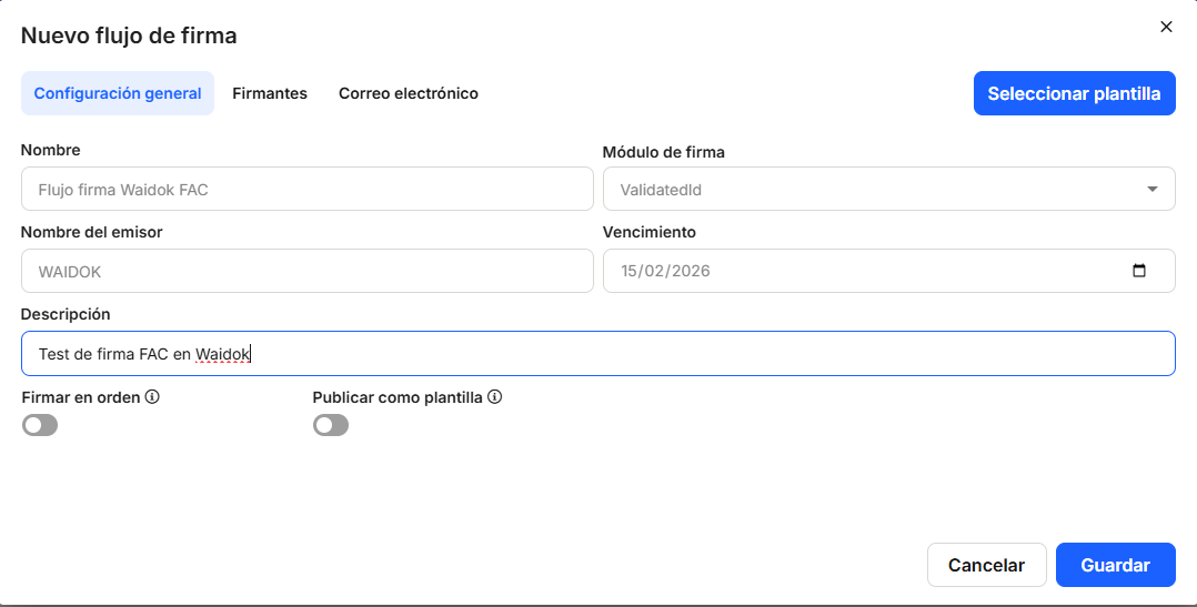 Dans le champ Description, nous pouvons fournir davantage d'informations permettant d'identifier le flux que nous allons lancer afin de le distinguer plus facilement des autres flux de signature des différents documents du système.