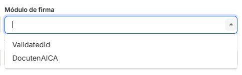 Dans le champ Type de signature, en fonction du fournisseur choisi dans la fenêtre précédente, nous pouvons choisir parmi les différents types de signature à distance proposés dans l'outil.