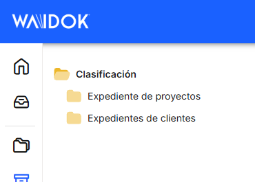 Sous "Classification", la liste hiérarchique et ordonnée de tous les dossiers existants est affichée, telle que définie, ce qui vous permet de les parcourir en cliquant sur le nom de chaque dossier et d'afficher la liste des documents qu'il contient et leurs données.