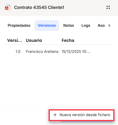 Si vous cliquez à droite du bouton, le système vous donnera la possibilité d'ajouter un document comme nouvelle version du document actuel.