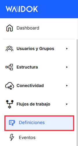 À partir de cette section du menu, les utilisateurs peuvent visualiser dans un tableau la liste detoutes les définitions des flux de travail quiont été générées. L'utilisateur pourra définir des workflows ou des flux de travail sur les documents qui sont téléchargés dans l'application. Le flux du système de gestion documentaire ou workflow documentaire consiste en une automatisation des processus où intervient la hiérarchie préétablie, maisappliquée aux documents existants. Cela permettra de réaliser les activités avec le moins d'efforts possible de la part du personnel, c'est-à-dire grâce à un logiciel. Grâce à l'automatisation du flux de travail, l'entreprise pourra réduire considérablement le temps consacré à chaque processus.