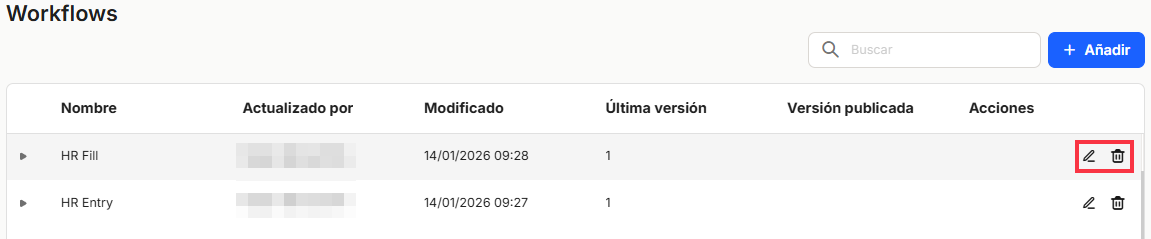 Une fois que nous avons créé ou généré le flux de travail correspondant, nous pouvons soit modifier le flux en cliquant sur l'icône du crayon .