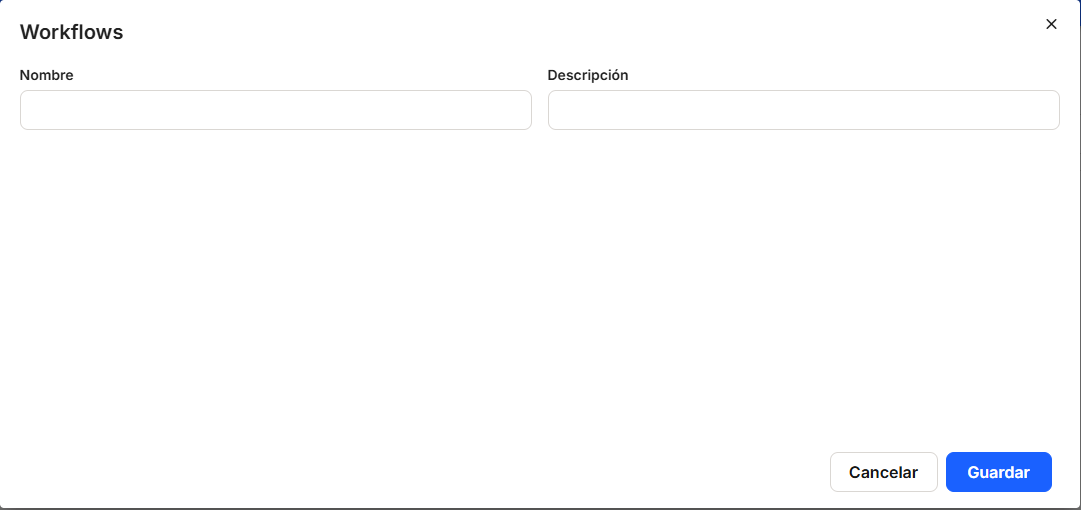 Encliquant sur "Ajouter", l'application affiche une nouvelle fenêtre pour enregistrer un nouveau flux de travail, où il est nécessaire d'établir un nom et une description identifiant les flux qui ont été établis, puis de sauvegarder ou d'annuler.